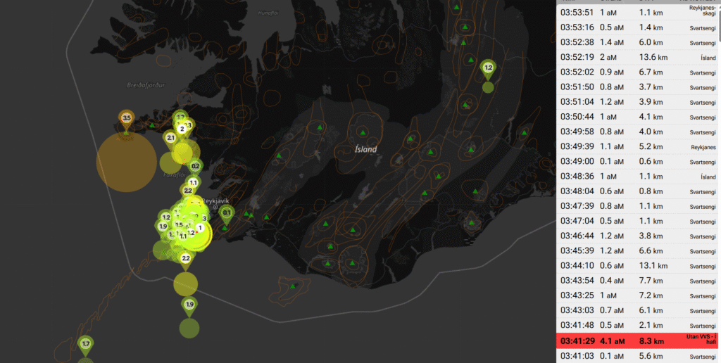 Saltylava.de informiert laufend über neue Entwicklungen rund um die seismische Aktivität auf der Reykjanes-Halbinsel.