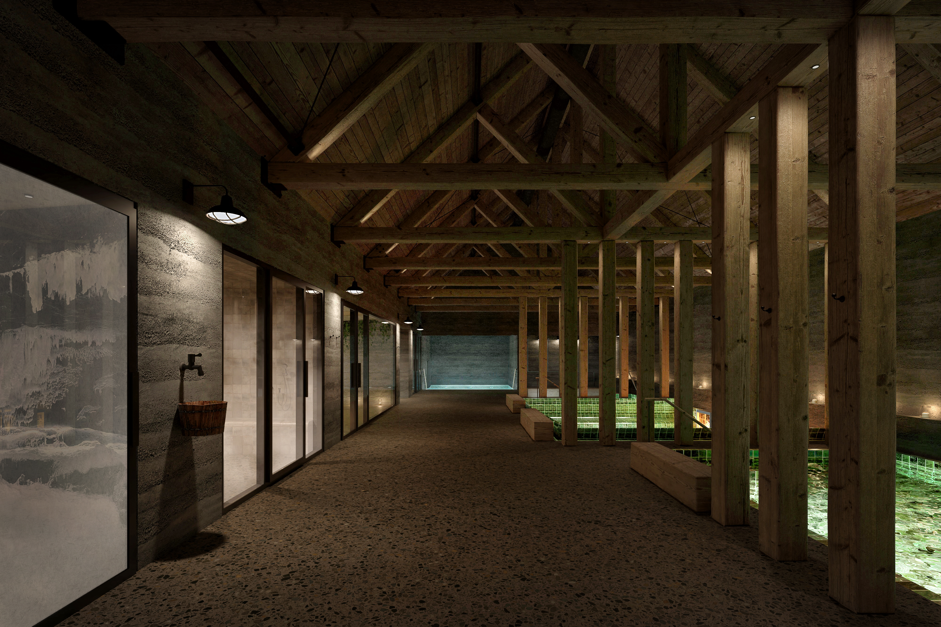 – Zwei Kaltwasserbecken – Event-Saunen für Wellness-Sitzungen – Ein Kneipp-Becken – Ruhige Entspannungsbereiche – Eine Swim-up-Bar – Ein Bistro & Bar mit warmen Speisen, Getränken und To-Go-Angeboten – Ein Spa-Badehaus mit Massagen und Körperritualen