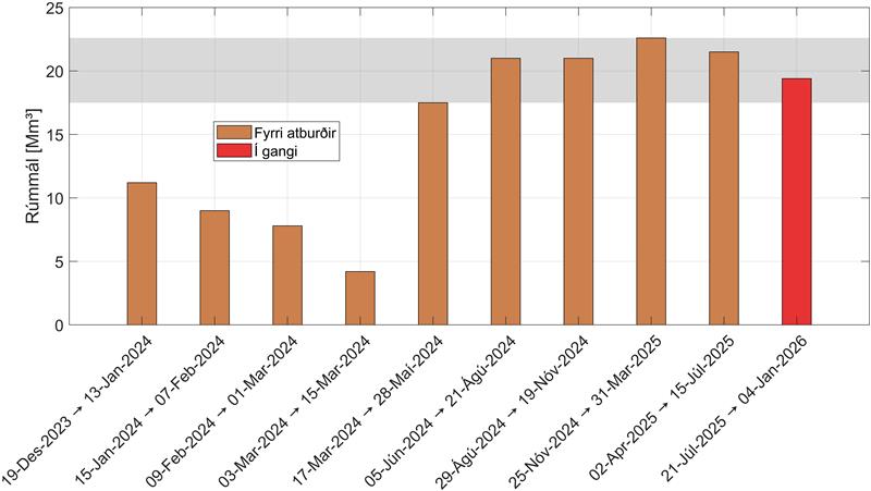 Unter Svartsengi sammelt sich weiter Magma an. Seit dem Ausbruch im Juli haben sich über 19 Millionen Kubikmeter angesammelt. Die Wahrscheinlichkeit eines erneuten Vulkanausbruchs im Sundhnúk-Kratergebirge nimmt weiter zu.